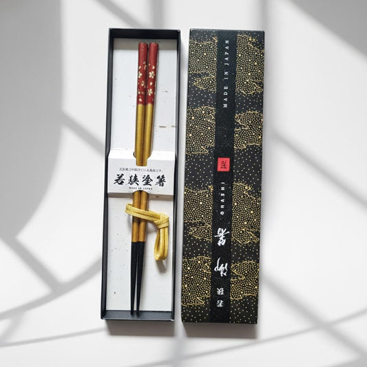 Japanese Lacquer Cherry Blossom Chopsticks Set | Traditional Hashi with Rest