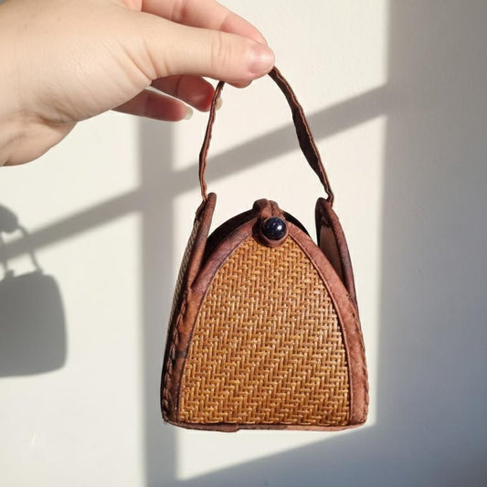 Vintage Rattan Tea Cup Bag | Woven Bamboo Gift Pouch | Japanese Style Storage Basket