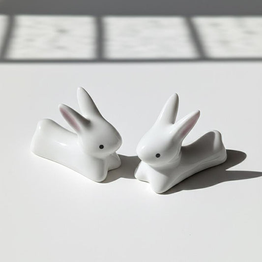 White Ceramic Bunny Rabbit Chopstick Rest, Kawaii Japanese Chopstick Holder, Cute Animal Kitchen Decor [More Coming Soon]