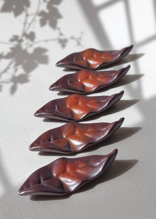 Japanese Leaf Shaped Ceramic Chopstick Rests, Authentic Mino Ware from Toki City Gifu, Handmade Clay Leaf Hashioki, Zen Decor
