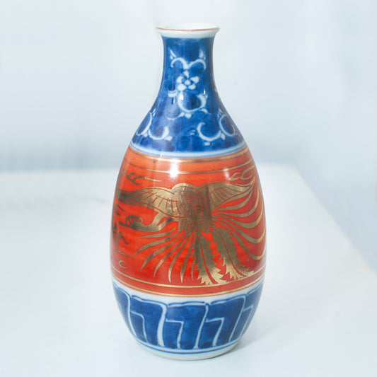 200 Year Old Blue & Red Phoenix Vase, Sake Bottle | Japan