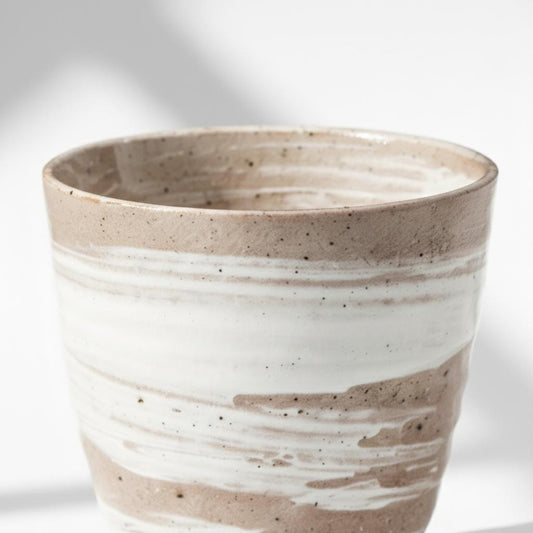 Handmade Japanese Hechimon Yunomi Pottery Marbled Glaze Tea Cup- Cream
