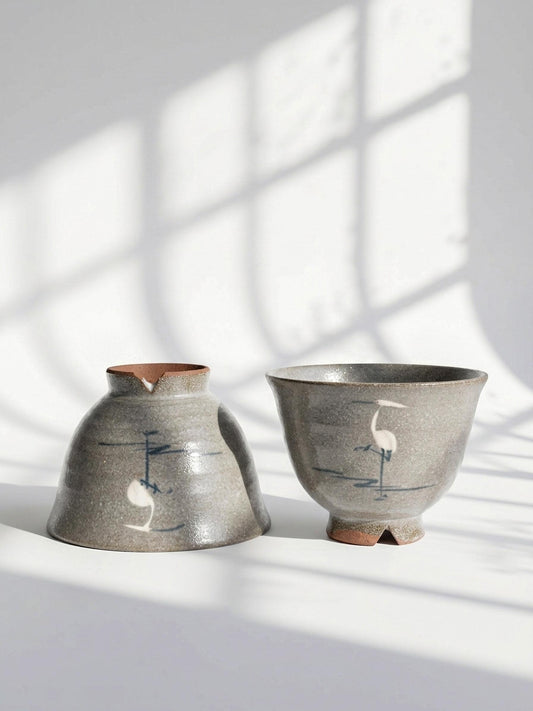 Vintage Tachikichi Crane Teacup | Showa Retro Japanese Heron Egret Yunomi | Symbol of Purity & Longevity