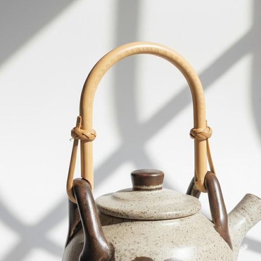 Vintage Japanese Ceramic Teapot, Bamboo Handle, Hand-Painted Floral