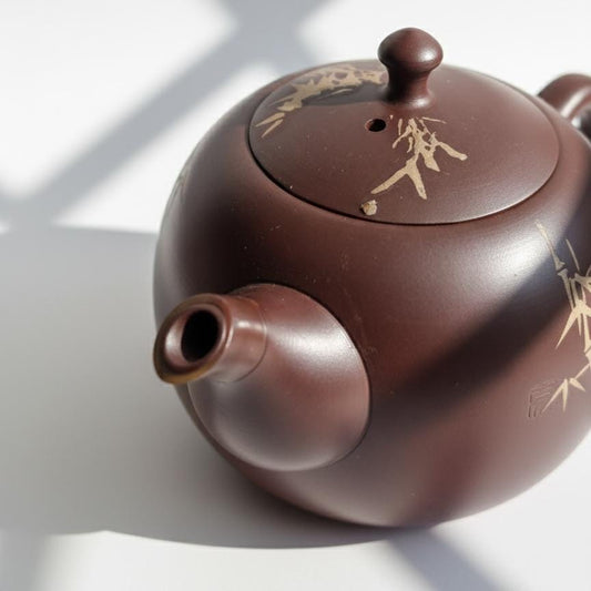 Vintage Japanese Banko Ware Teapot | Yokkaichi Clay Kyusu| Gold Bamboo Design | Signed Artist Box