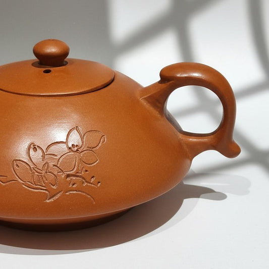 Handmade Yixing Terracotta Teapot Set, Lotus Carving, Removable Infuser