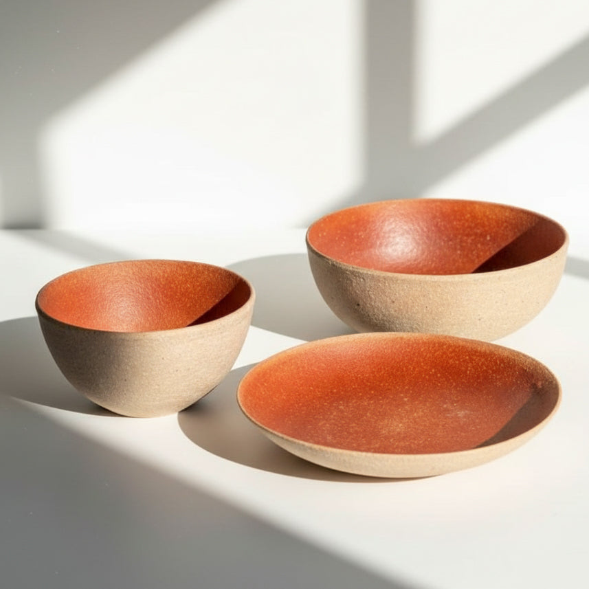 A harmony woven by earth and fire. Naien features scarlet hues on the interior, while Gaien highlights them on the exterior. This series blends warmth with strength.